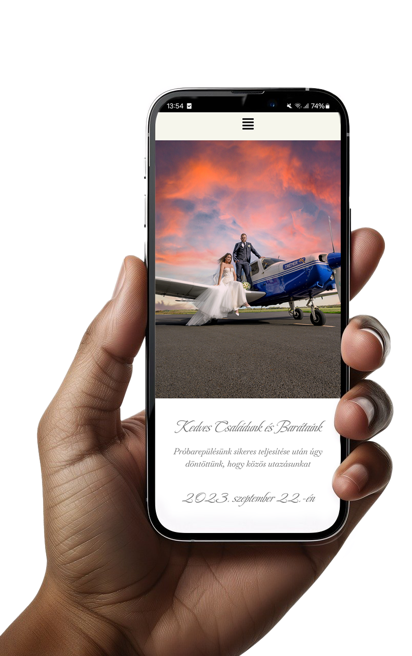 Különleges esküvői meghívóink része az egyedi designal ellátott kártya, amivel egy érintéssel elérhetővé válik az esküvői weboldalatok